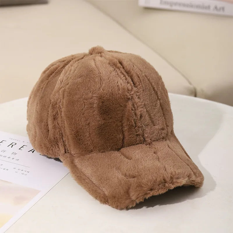 maoxiangshop New Fluffy Baseball Cap For Men Women Winter Thick Plush Peaked Hat Faux Fur Duck Tongue Caps Warm Ear Protection Bonnet