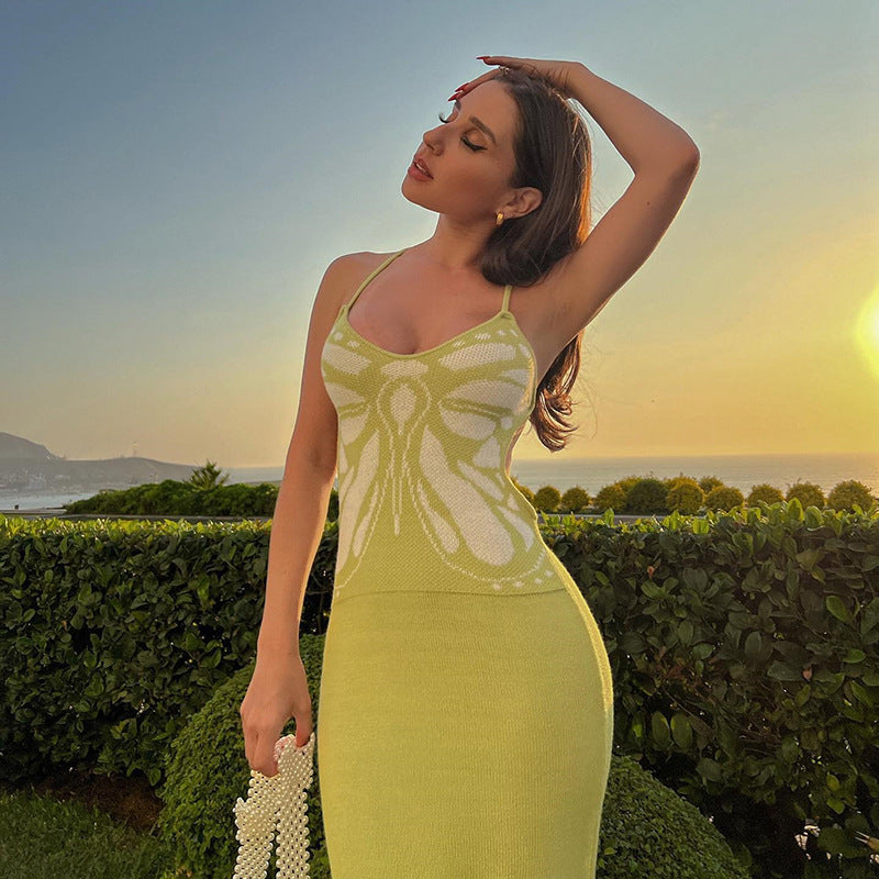 church outfit Women's Summer Monsoon Sling Low-Cut Sexy Backless Knitted Lace-up Dress Women