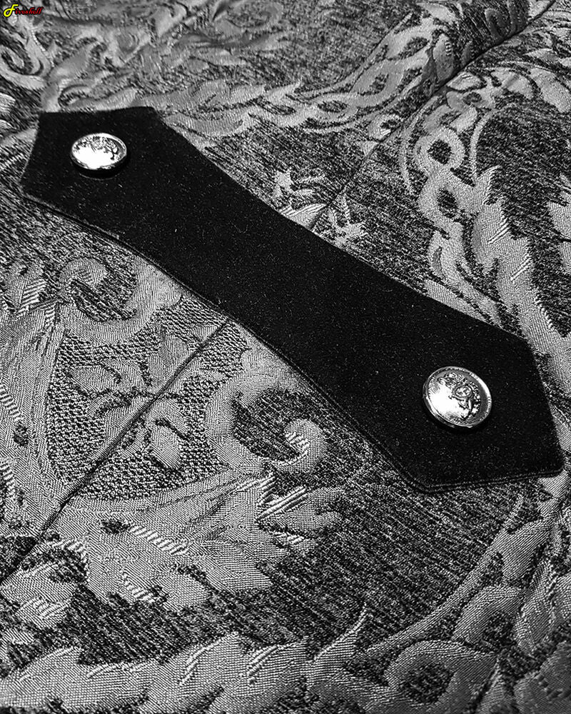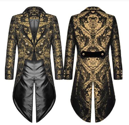 maoxiangshop Adult Men Medieval Cosplay Black Jackets Devil Fashion Gothic Steampunk Tailcoat Costume Black Brocade Damask Wedding Halloween