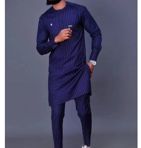 maoxiangshop African Men Dress Shirt Mid Length Round Neck Long Sleeve Tops Male Spring Traditional Plus Size Slim Dashiki Blouse Man-ALL SET