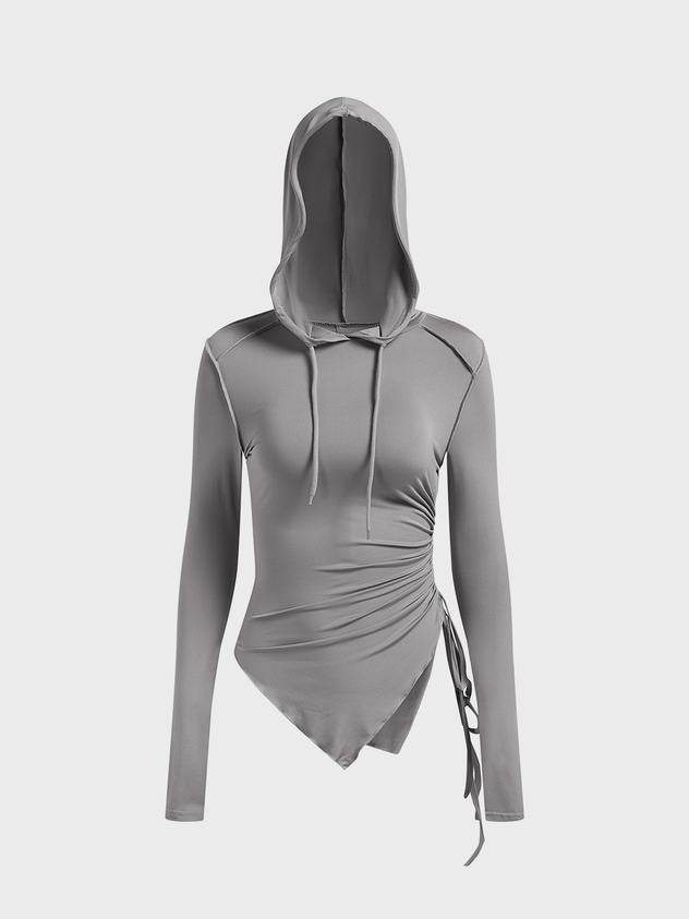 maoxiangshop Asymmetrical Hoodie Plain Long Sleeve Shirt