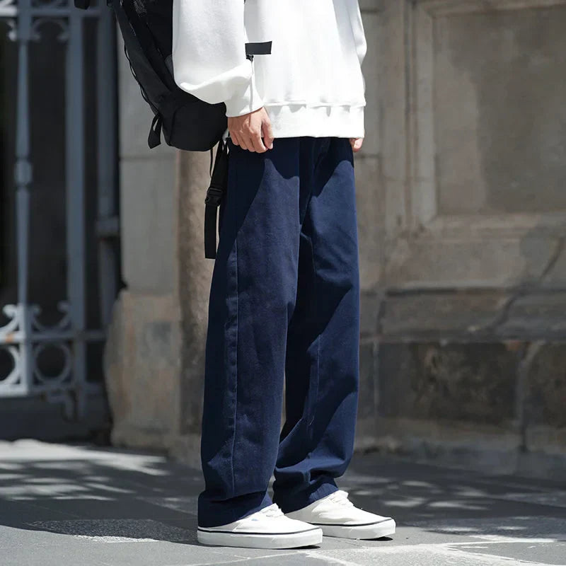 Autumn Cotton Casual Pants Men Fashion 3 Color Straight Pants Men Japanese Streetwear Loose Wide Leg Pants Mens Trousers M-2XL