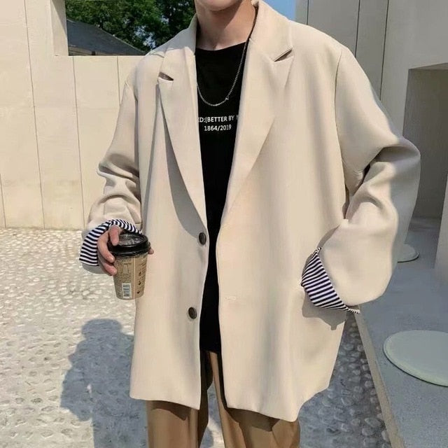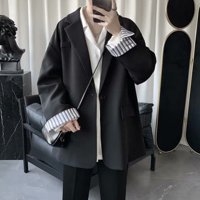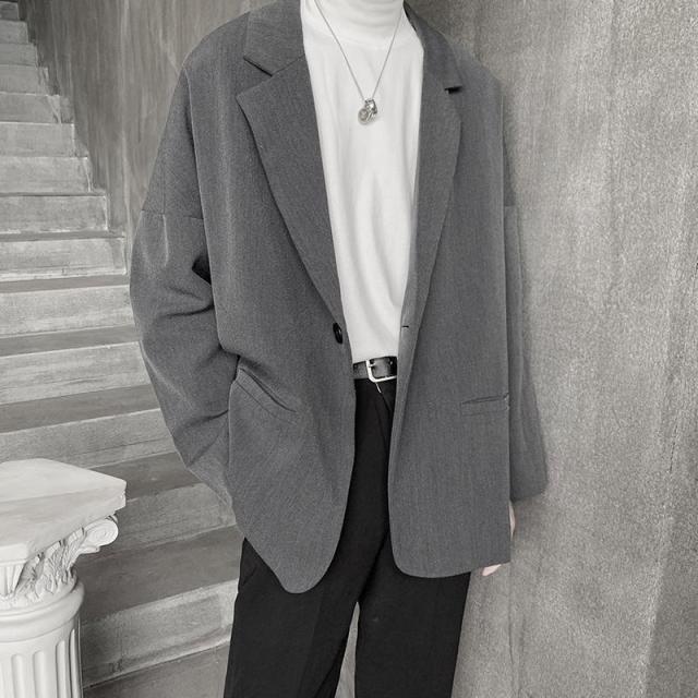 maoxiangshop Blazers Men Leisure British-style Trendy Loose All-match Simple Korean Suit-tops Male Single-breasted Retro Daily Ins Streetwear