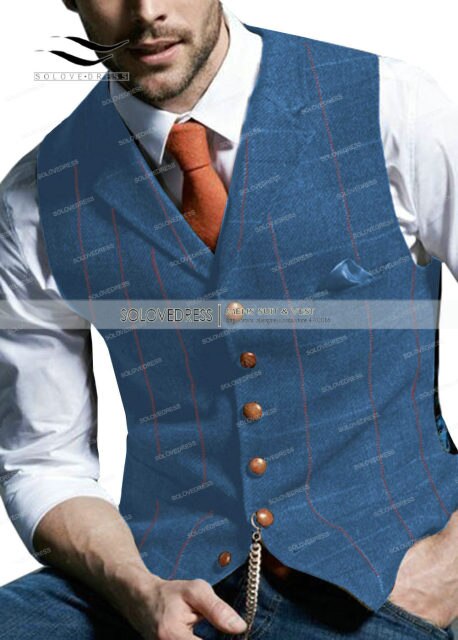 Brown Casual Gentleman Men's Army Green Vest Plaid Soft Wool Jacket Tweed Business Waistcoat For Best Man Wedding For Party