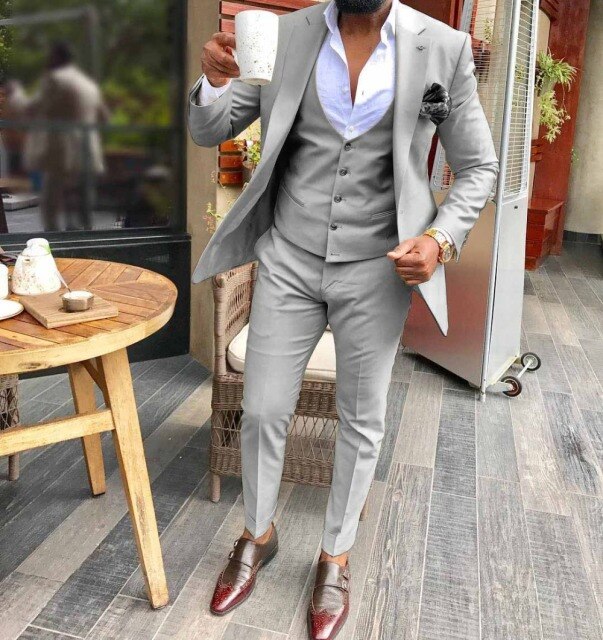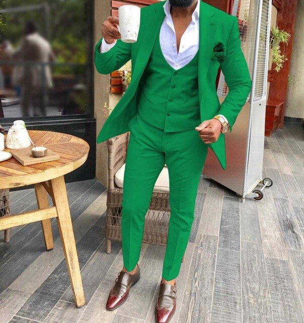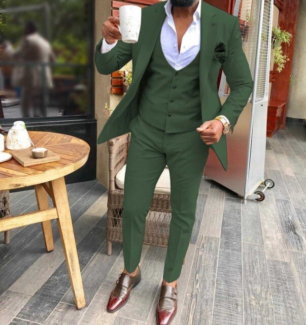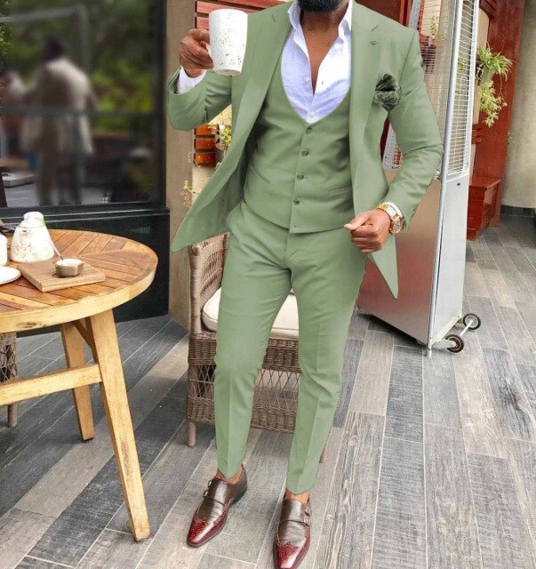 Custom Men Suits Slim Fit 3 Pieces Groomsmen Army Green Champagne Lapel Business Tuxedos for Formal Wedding(Blazer+Pants+Vest)