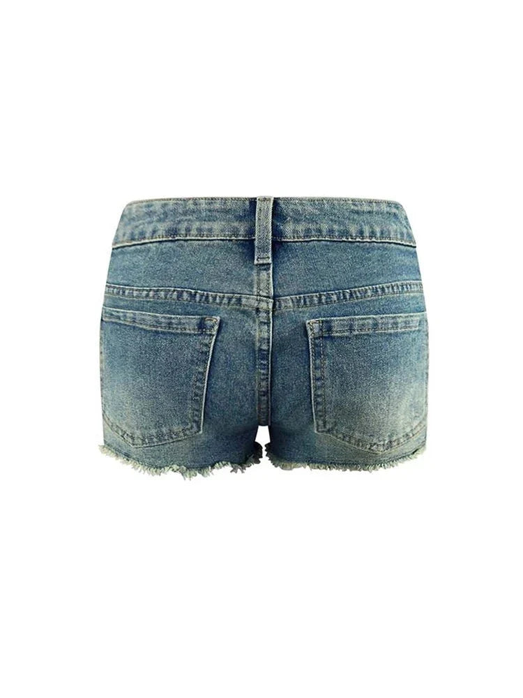 maoxiangshop Fashion Lace-Up Bandage Blue Stretch Denim Shorts for Women Summer Casual Skinny Short Jeans Sexy Beach Night Club Outfits