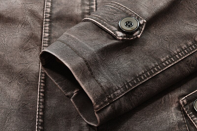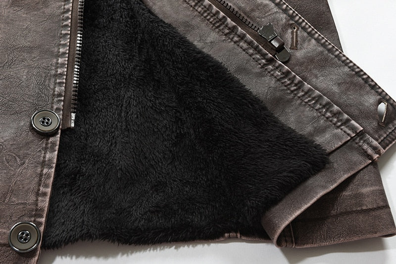 maoxiangshop Faux Leather Jackets Men High Quality Classic Motorcycle Bike Cowboy Jacket Coat Male Plus Velvet Thick Coats L-3XL
