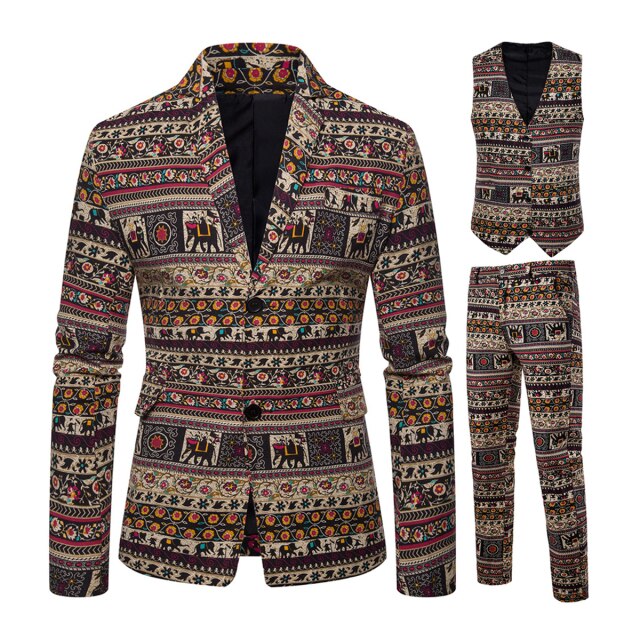 Mens Suits 3 Piece National Style Men's Wedding Suit Slim Fit African Bohemian Blazer Vest Pants for Party Business