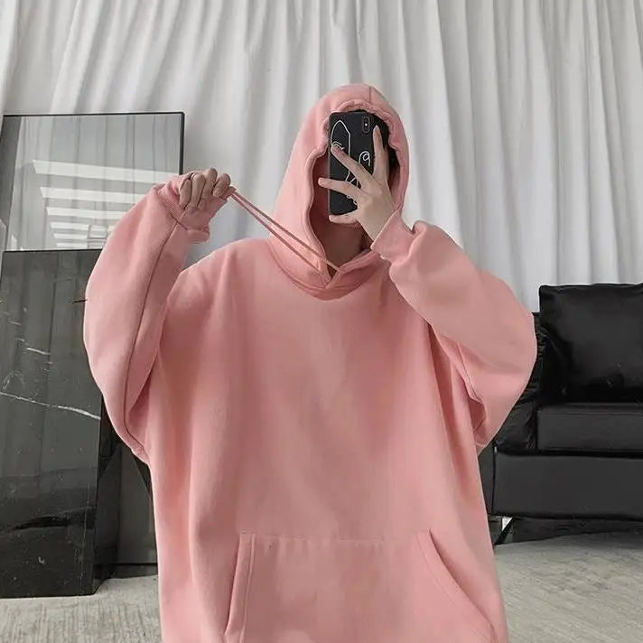 maoxiangshop Fleece Hoodie Men Casual Pocket Long Sleeve Oversized Pullover Tops Harajuku Street Thicken Solid Sweatshirt Sports Pullover 5xl