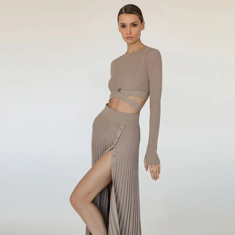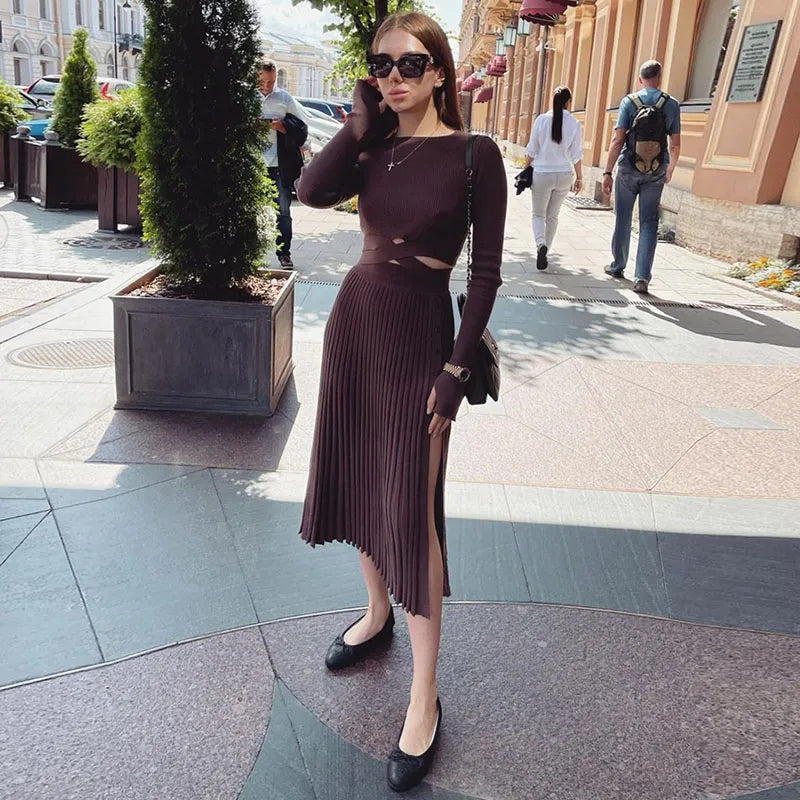 Knitted Sweater Halterneck Set Sexy Straps Slim Bodycon Top 2022 New Solid Colour High Elastic Round Neck Sweater Pullovers