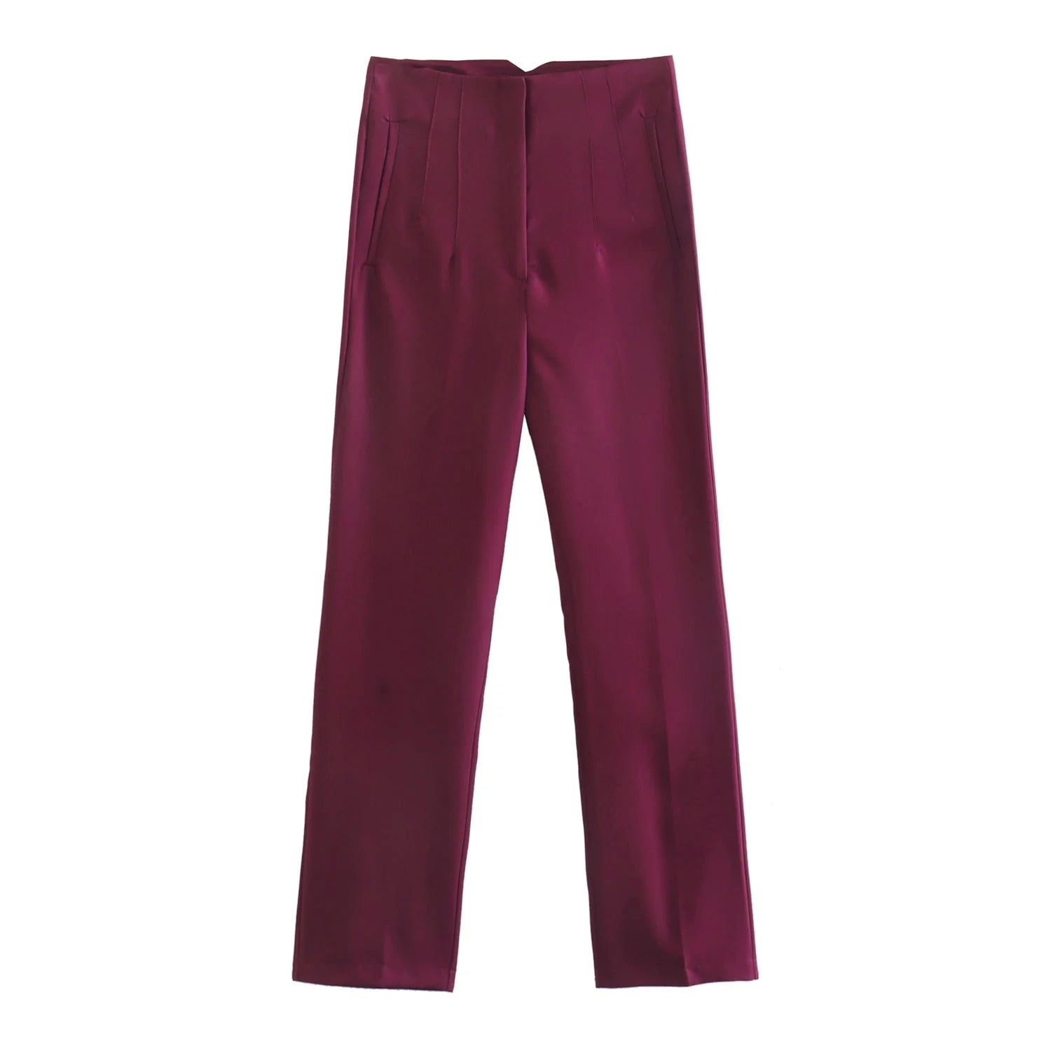 maoxiangshopWomen Light Blue Chic Fashion Office Wear Straight Pants Vintage High Waist Zipper Fly Female Trousers Fashion
