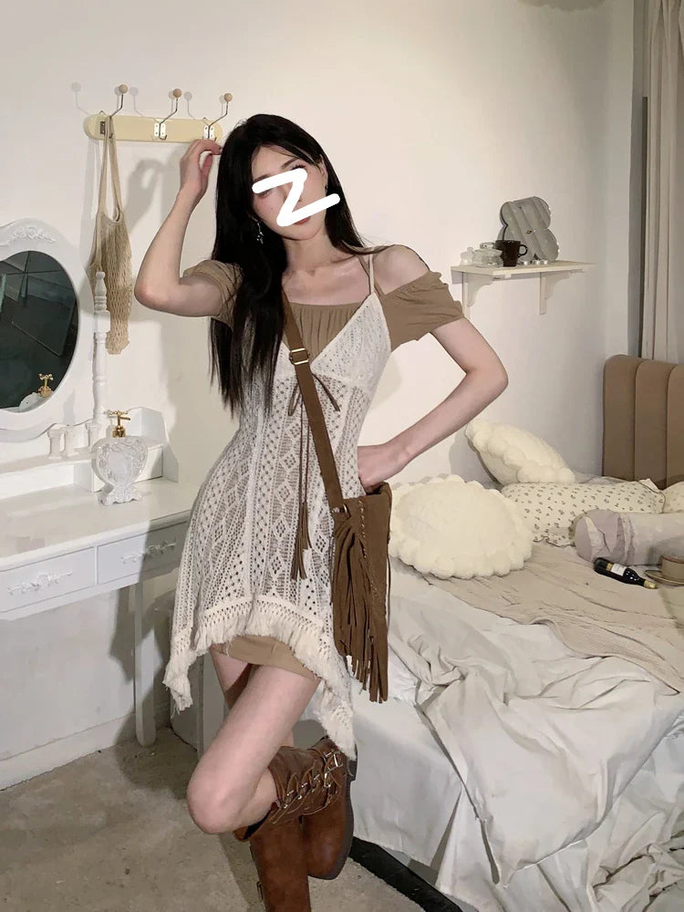 Korean Fashion 2 Piece Dress Set Women Pure Color Y2k Mini Dress Elegant Casual Short Party Dress Office Lady Summer Slim
