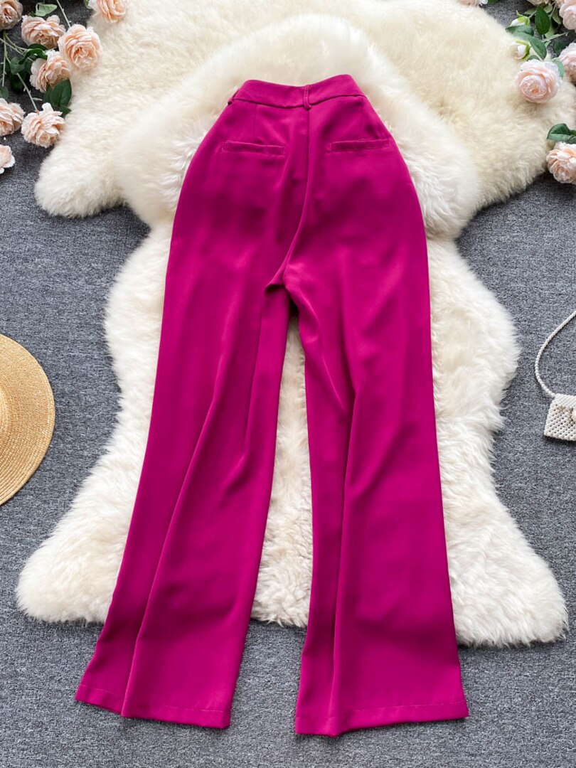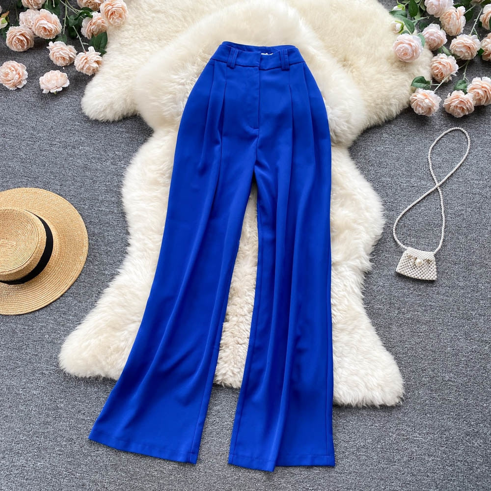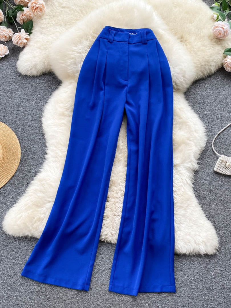 maoxiangshop Korean Fashion Women Flare Pants Solid High Waist Pleated Front Full Lengh Trousers Summer Casual Female Long Pants
