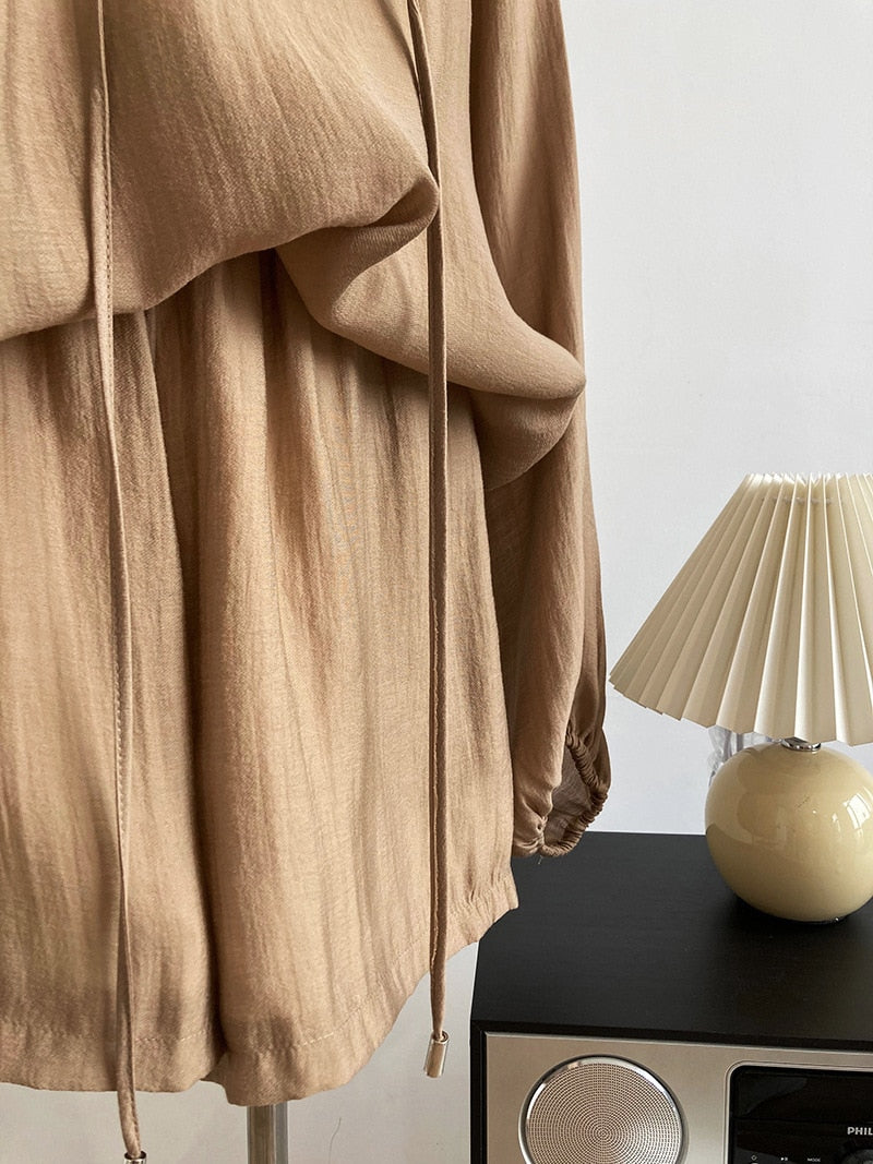 maoxiangshop Lace Up Long Sleeve Summer Pjamas for Women Shirts Tops and Wide Leg Shorts Suit Tracksuit Women Two Piece Set Lingerie