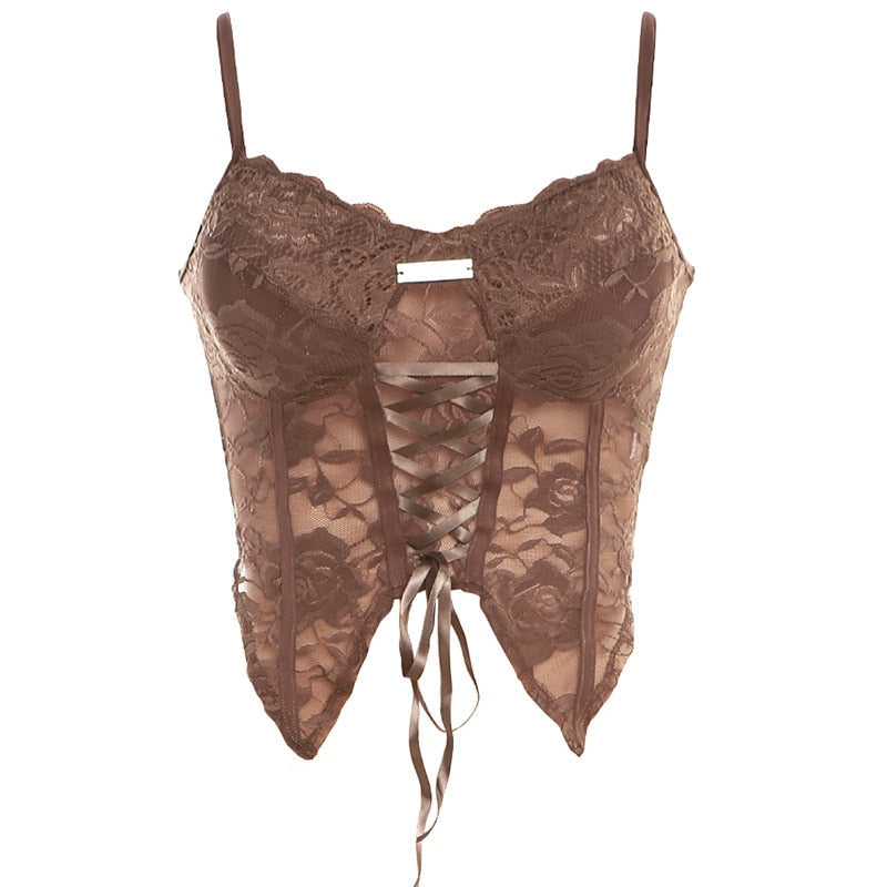 Lace Women Corset Top Fashion Y2K Sexy Retro Cute Sweet Tank Top Fairy Core Aesthetic Summer Sleeveless Crop Tops Woman