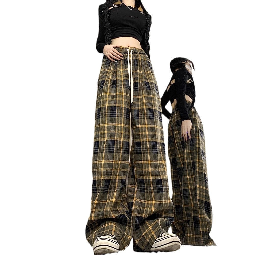 fall outfits aesthetic Retro Brushed Plaid Casual Pants Women's Autumn New High Waist Straight Pants Slimming Wide Leg Mop Long Pants