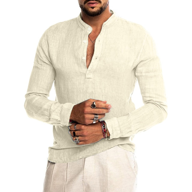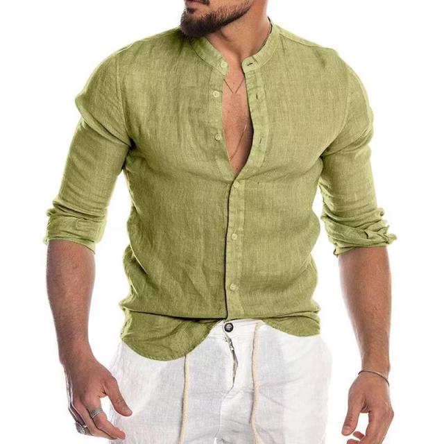 Men's Summer Cool Breathable Cotton Linen Shirts Casual Long Sleeve Shirt For Man