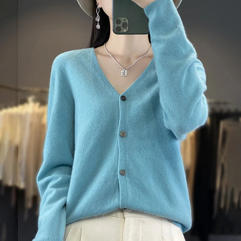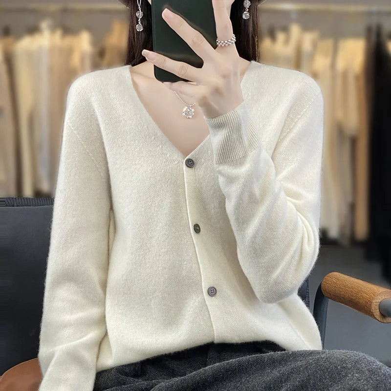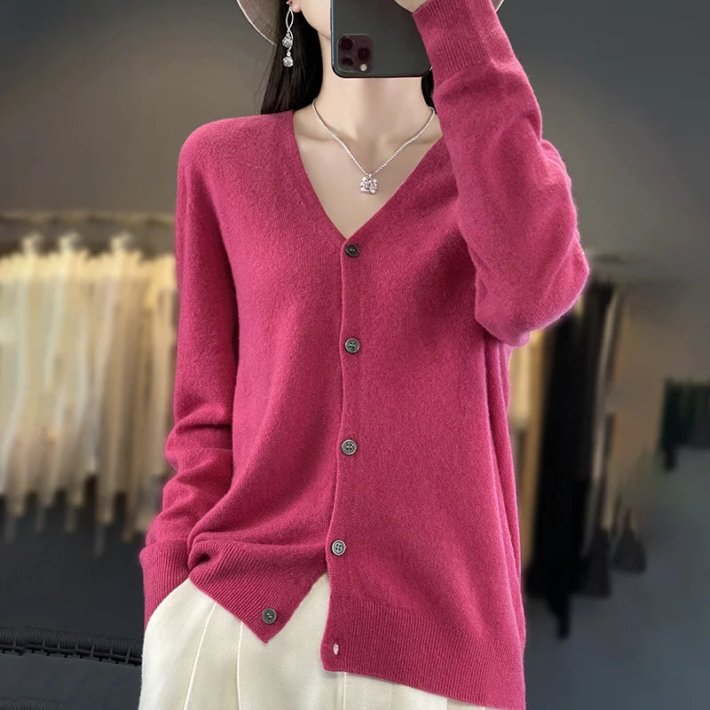 maoxiangshop New Fashion Spring Autumn 100% Merino Wool Women's V-neck Cardigan Cashmere Sweater 2024 Female Knitwear Clothing Korean Tops