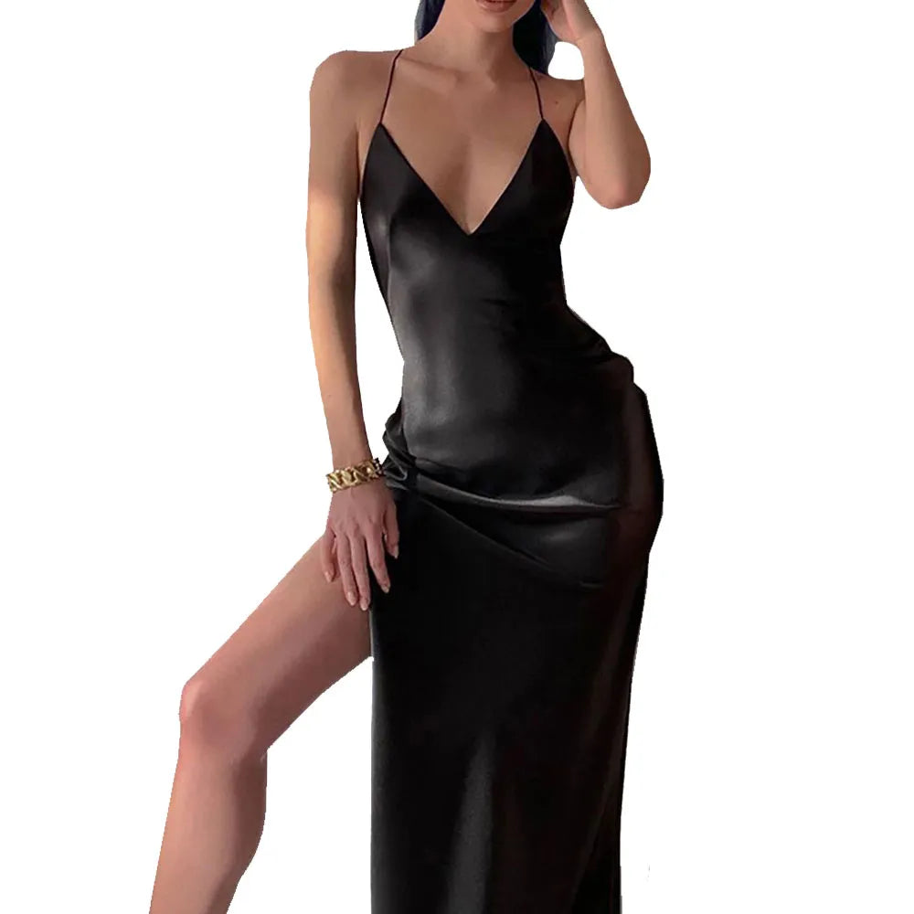 maoxiangshop Sexy Solid Backless Slit Party Long Dress Summer Dress Suspenders Slim fit women Y2K Long Dress Deep V Woman Evening Dress