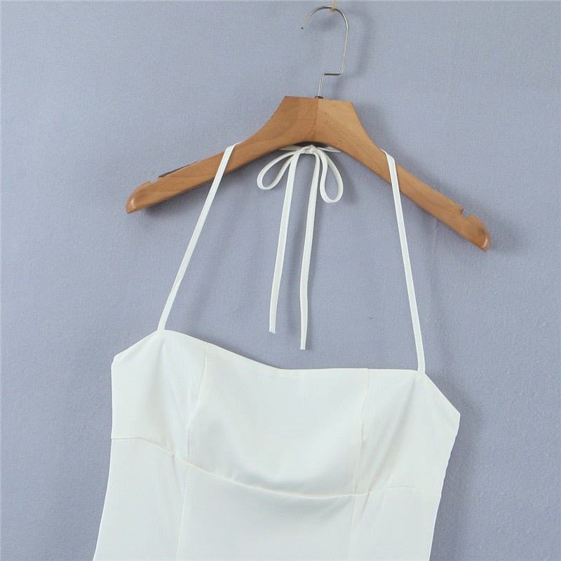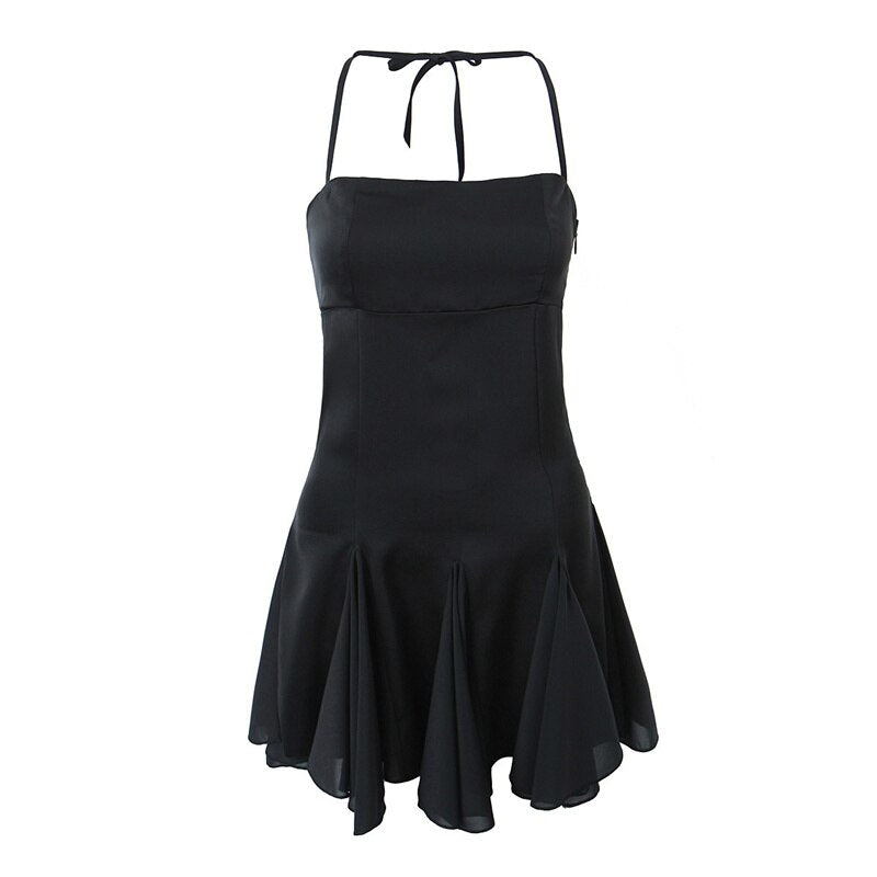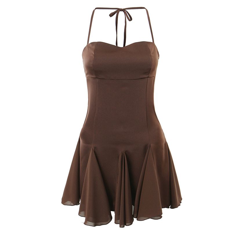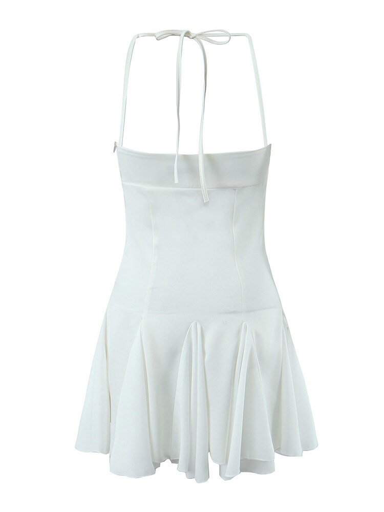 maoxiangshop Spring Summer New Sexy Slim Fashion Women Halter Neck Tie Backless Pleated Short Strap Mini Dress Female