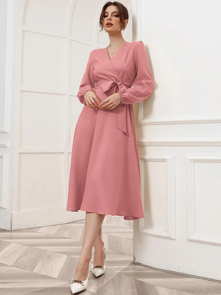 Summer Dresses Woman Elegant V-neck Long-sleeved Dress Fashion Office Midi Dress Bandage Dresses Party Women's Clothing