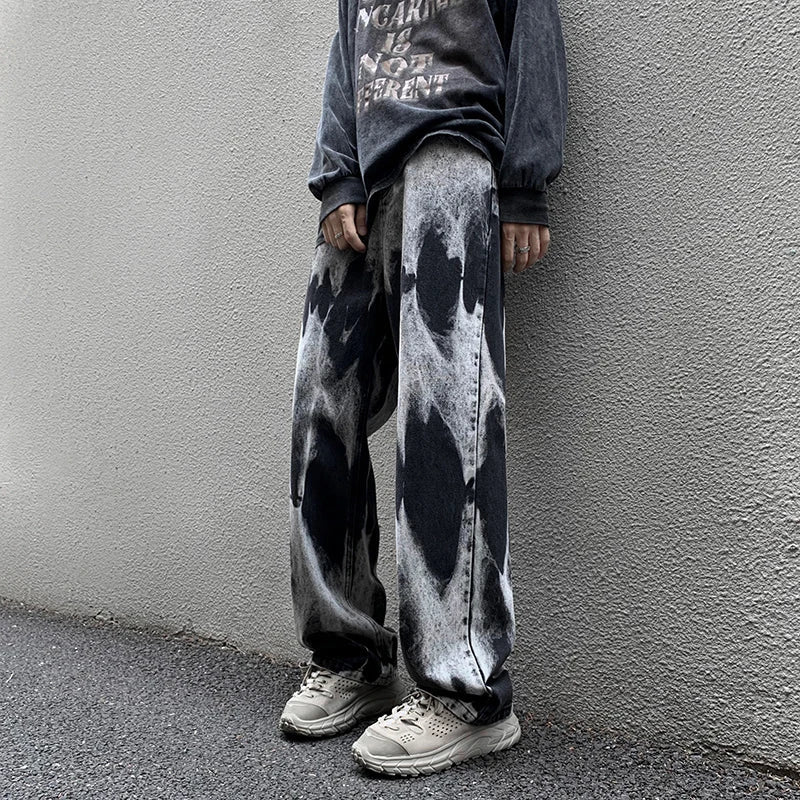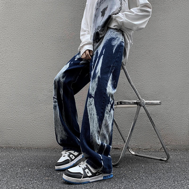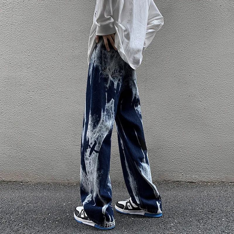 maoxiangshop Tie-dye Jeans Men High Street Straight Denim Pants Men Baggy Fashion Trend Jean Pants Mens Wide-leg Trousers BF Clothing