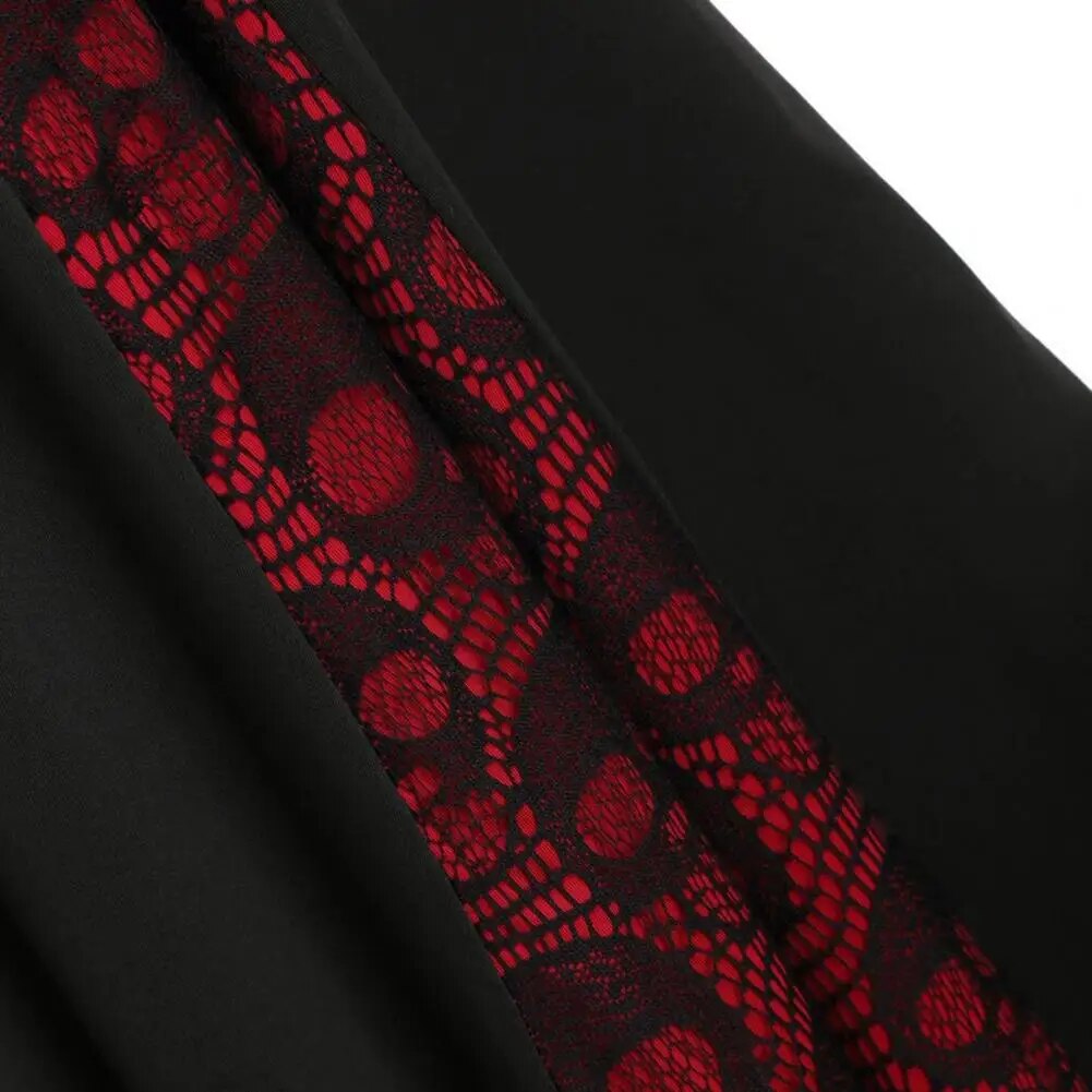 maoxiangshop Women Vintage Lace-up Skirts Skull Lace Stitching Buttons Big Swing Skirt Female Halloween Party Medieval Cosplay Costumes