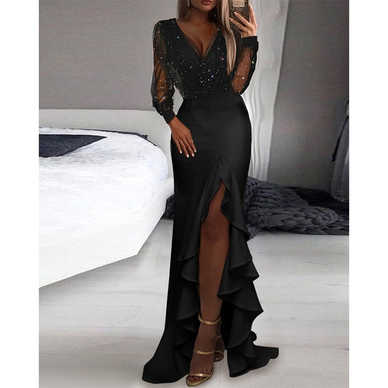 maoxiangshop Women White Party Dress Slit Sexy Elegant Classy Wedding Long Dresses One Shoulder Slim Ladies Evening Club Vestido De Mujer