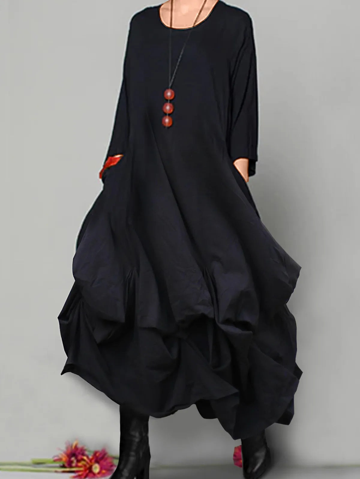 maoxiangshop Women Winter Solid Round Neck Slouchy Asymmetrical Hem Midi Dress Long Sleeve Dress Winter Dress Casual Party Dresses
