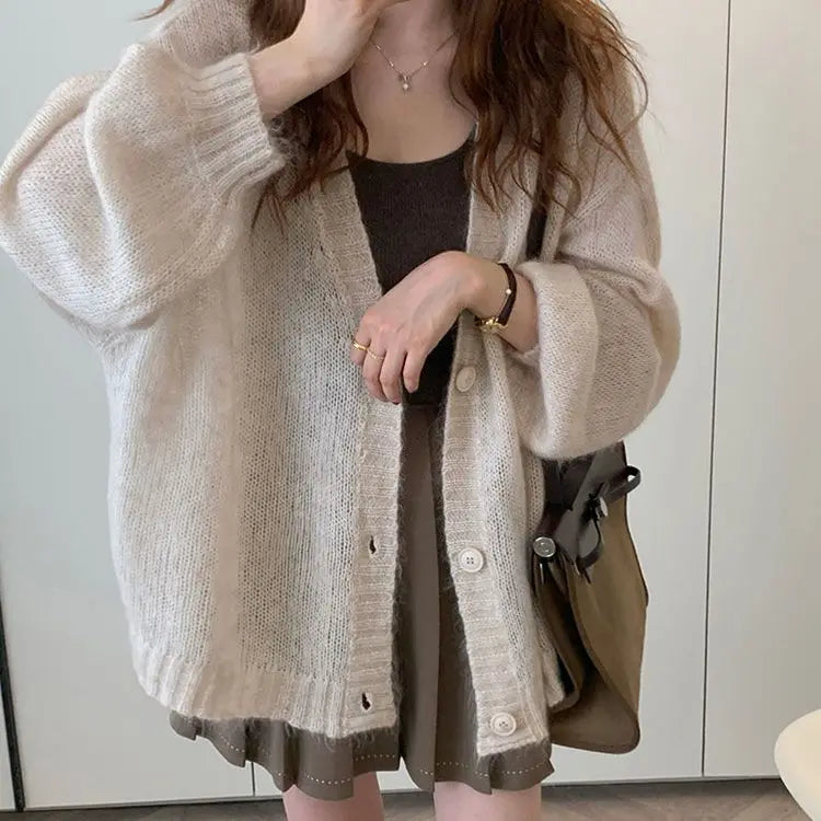 maoxiangshop Autumn Winter Fashion Casual Women's Tees Simple Soft Knitted Sweater Gentle Warm Cardigan Coat Temperament Office-Lady