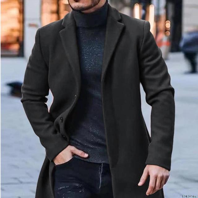 Winter Wool Blends Trench Coat Men Long Overcoat Solid Color Modern Fashion Windbreaker Jackets Mens Overcoat England Style