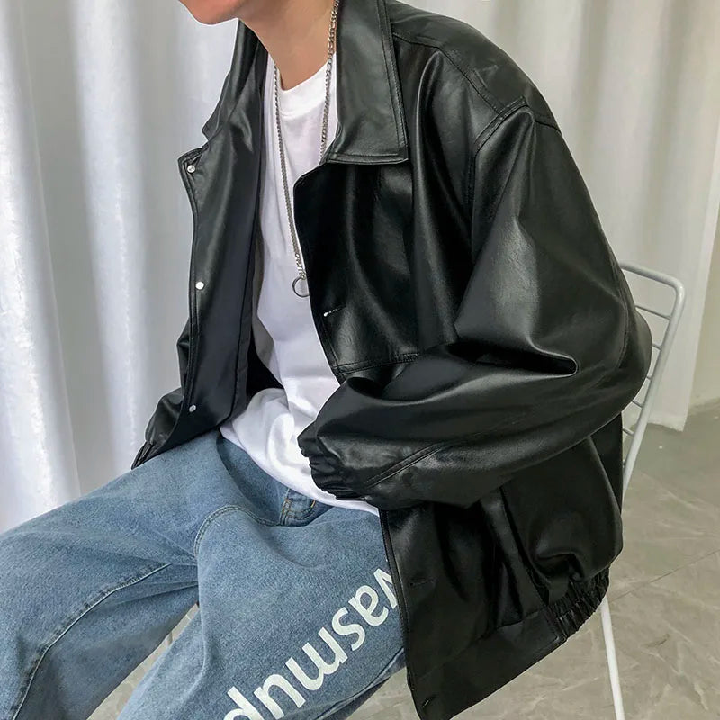 maoxiangshop Spring New Loose Soft Leather Jacket Single Breasted Jacket Men Casual Biker Jacket Men Jacket Leather Large Size XXL
