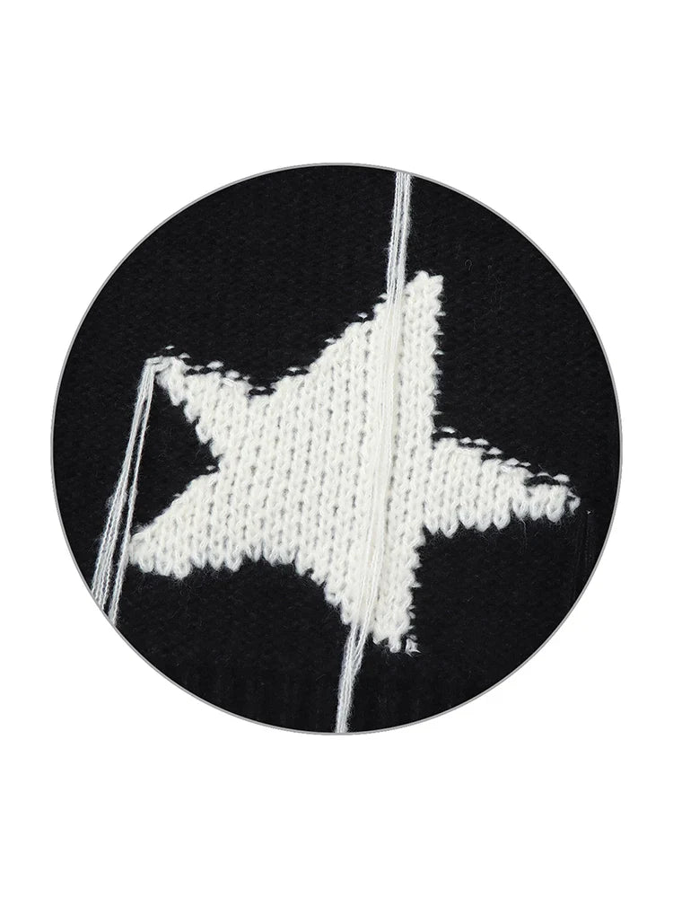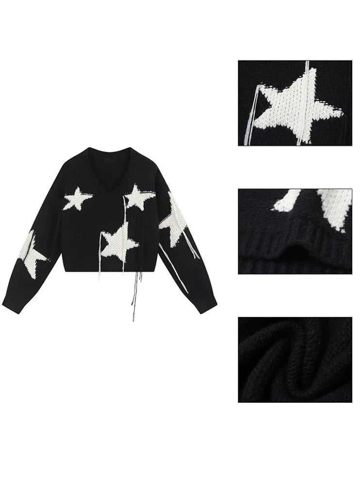 Fall Winter Warm Harajuku Fashion O-neck Star Cropped Sweaters Long Sleeve Pullovers Top Woman 2000s Streetwear Jerseys New