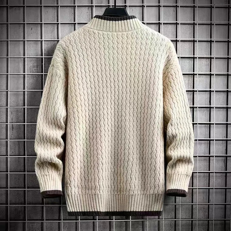 maoxiangshop New Winter Harajuku Sweater Men Casual O-Neck Pullovers High End Mens Striped Sweaters Male Thick Warm Pull Homme M-4XL