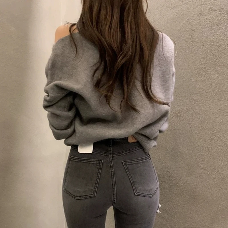 maoxiangshop 2024 Autumn Winter Women Turtleneck Sweater Oversize Warm Pullovers Sweater Long Sleeve Off Shoulder Loose Jumper