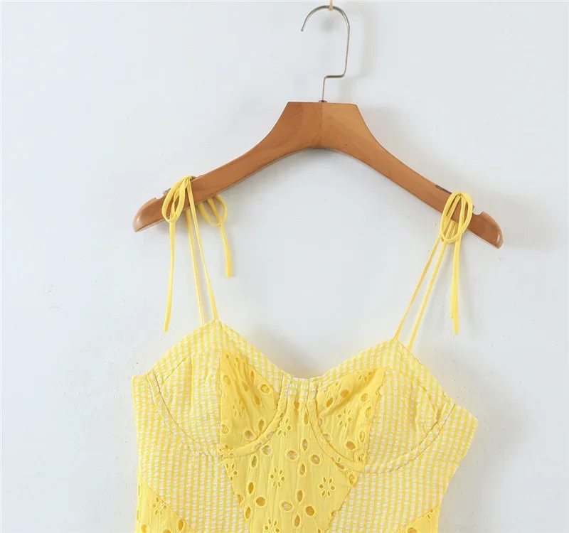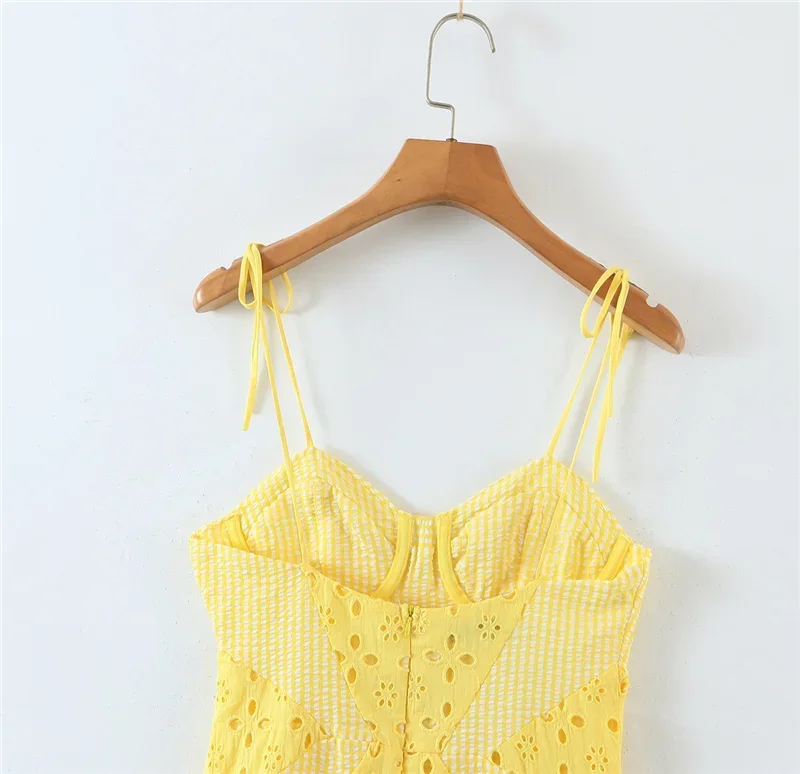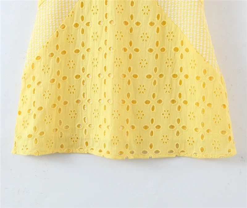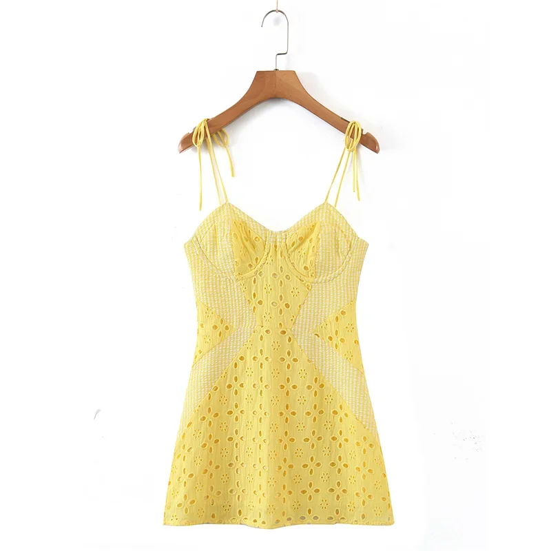 2024 New Fashion Sexy Woman Slim Backless Hollow Embroidery Stitching Strap Mini Dress Chic Super Short Dresses