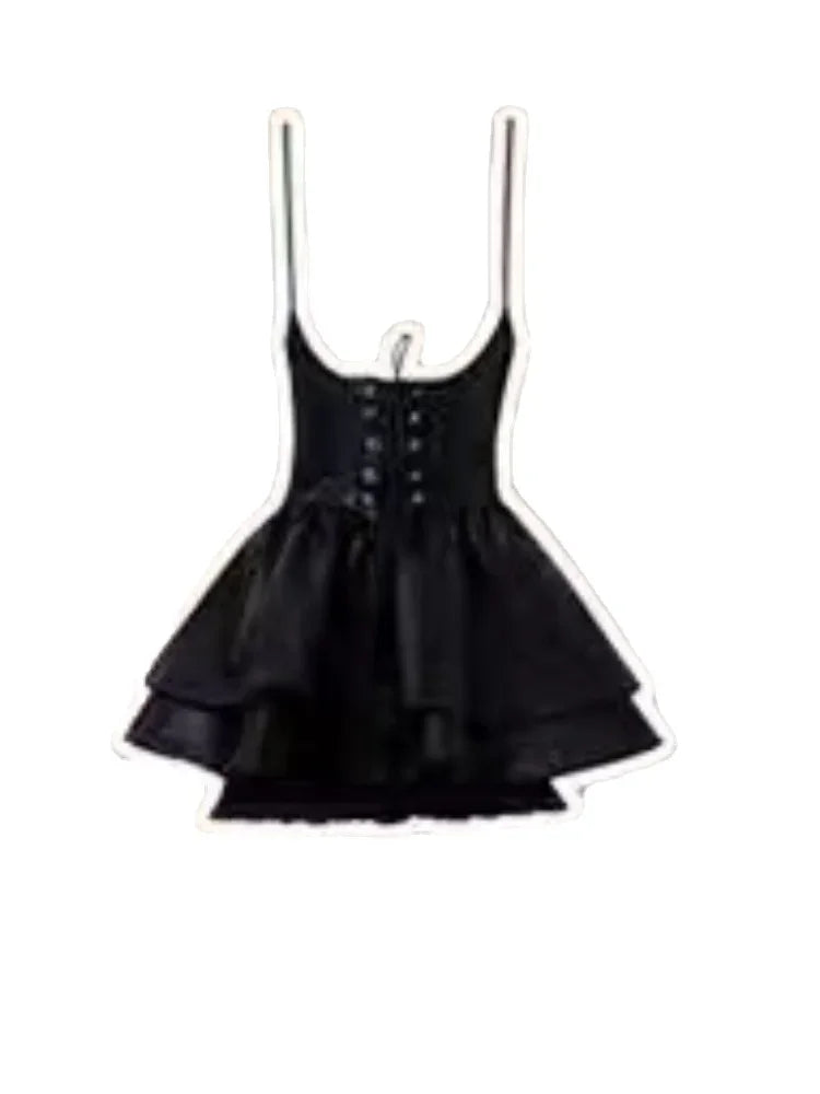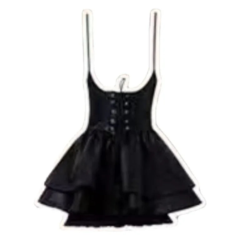 New High Waist Leather Black Mini Dress + Casual Knitted Sweater Elegant Clohting Woman Korean Fashion Suit Design Chic
