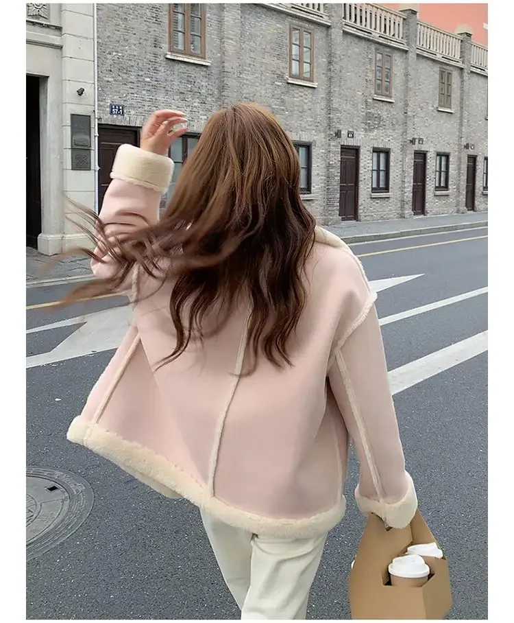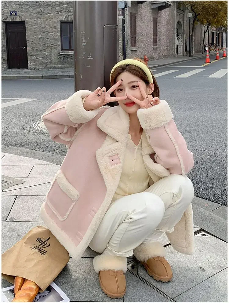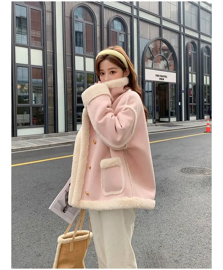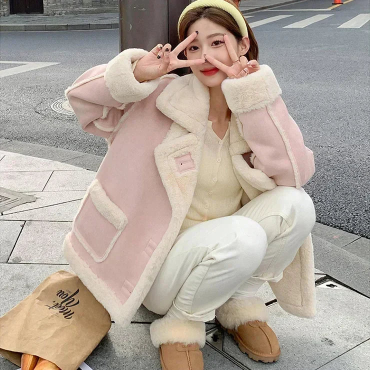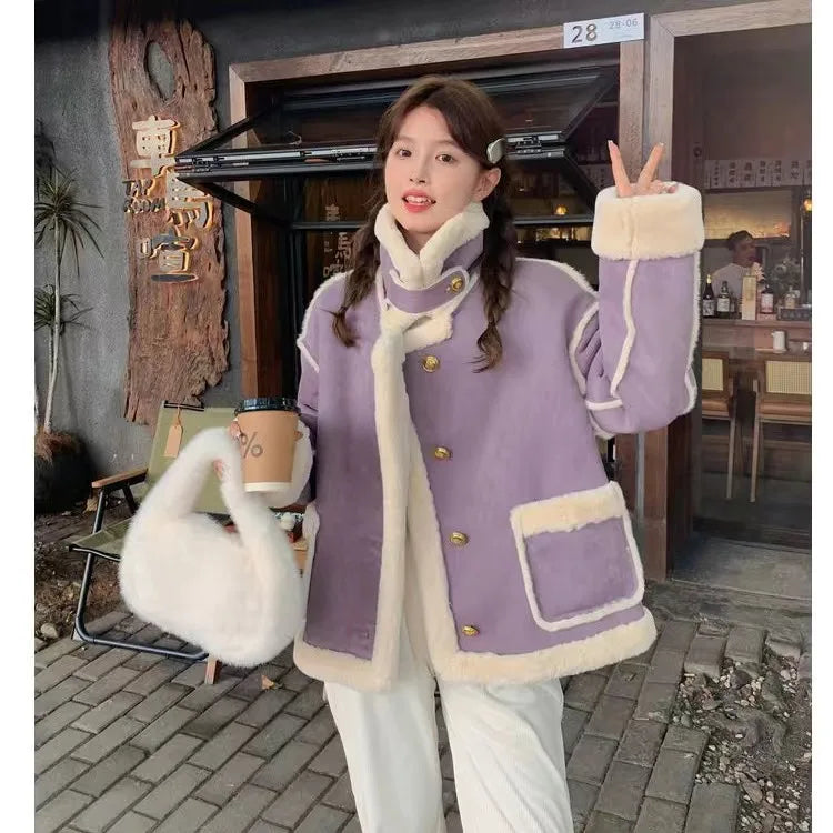 new Korean fashion Maillard fat MM purple Kawaii lamb suede plus velvet coat women's Y2K Harajuku loose casual warm coat