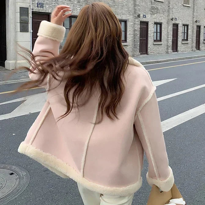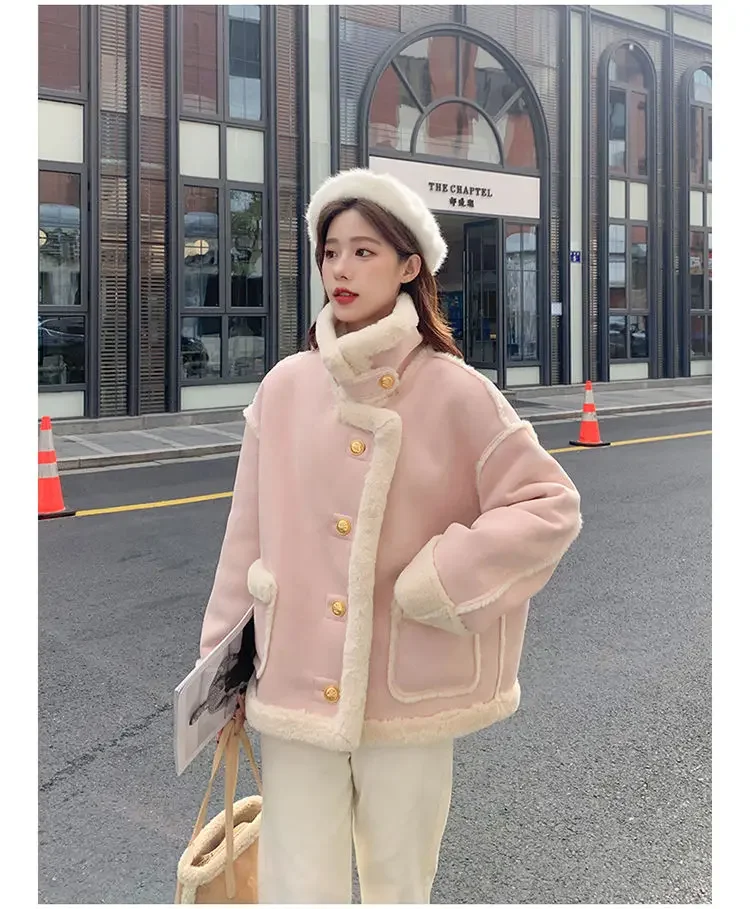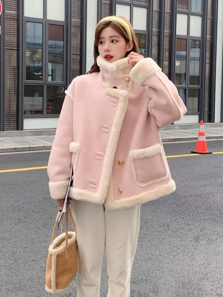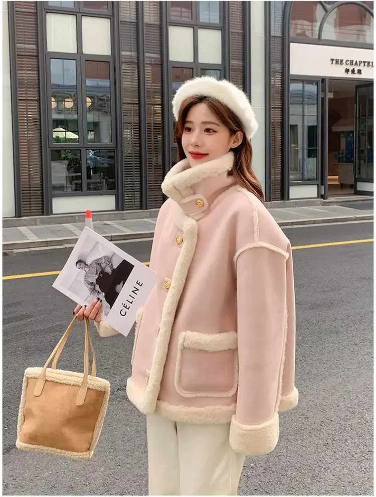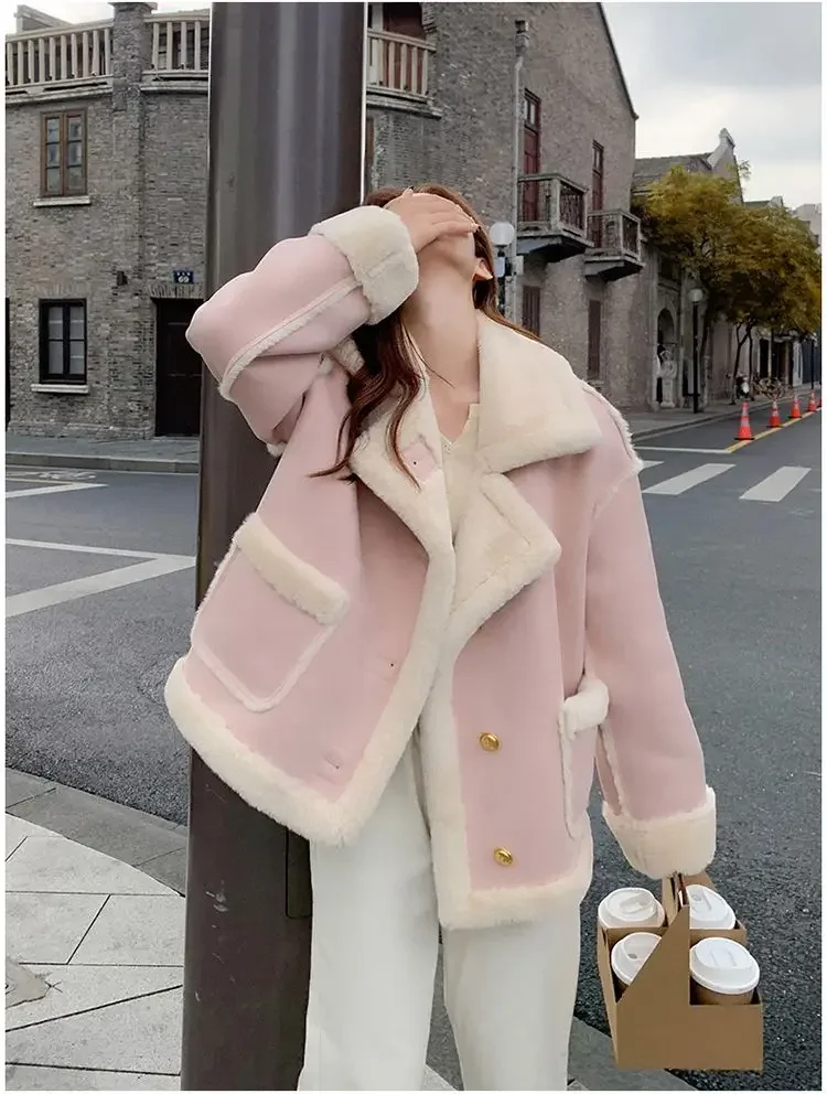 new Korean fashion Maillard fat MM purple Kawaii lamb suede plus velvet coat women's Y2K Harajuku loose casual warm coat