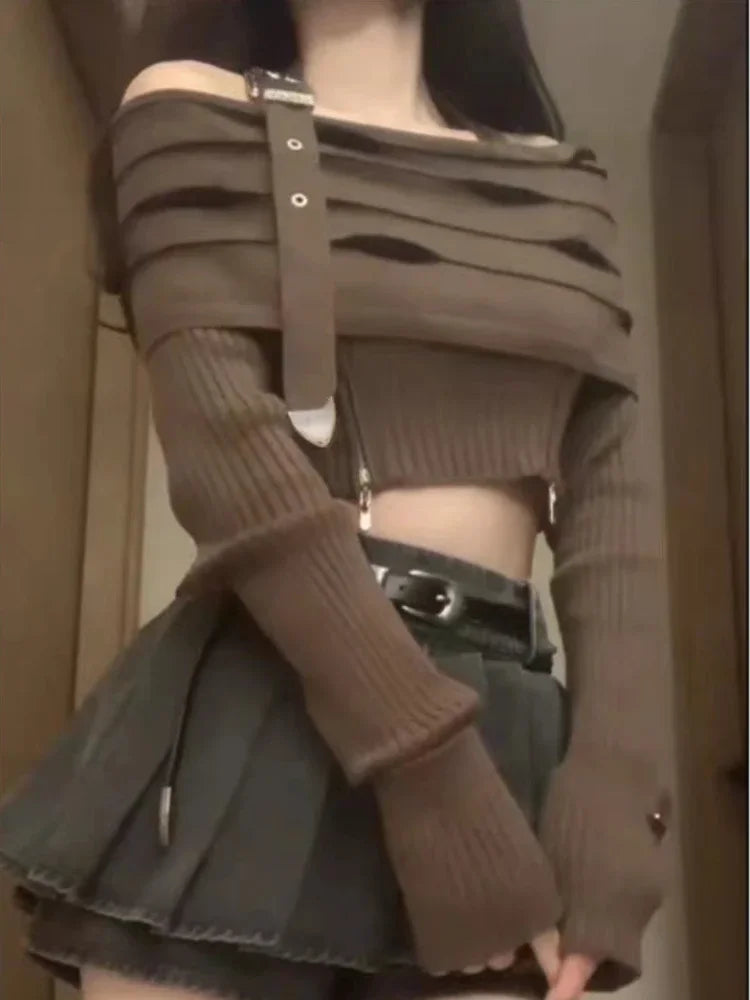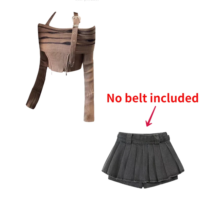 Summer Korean Fashion 2 Piece Set Woman Casual Knitted Sweater + Vintage Denim Shorts Skirt Party Elegant Clothing Outfits
