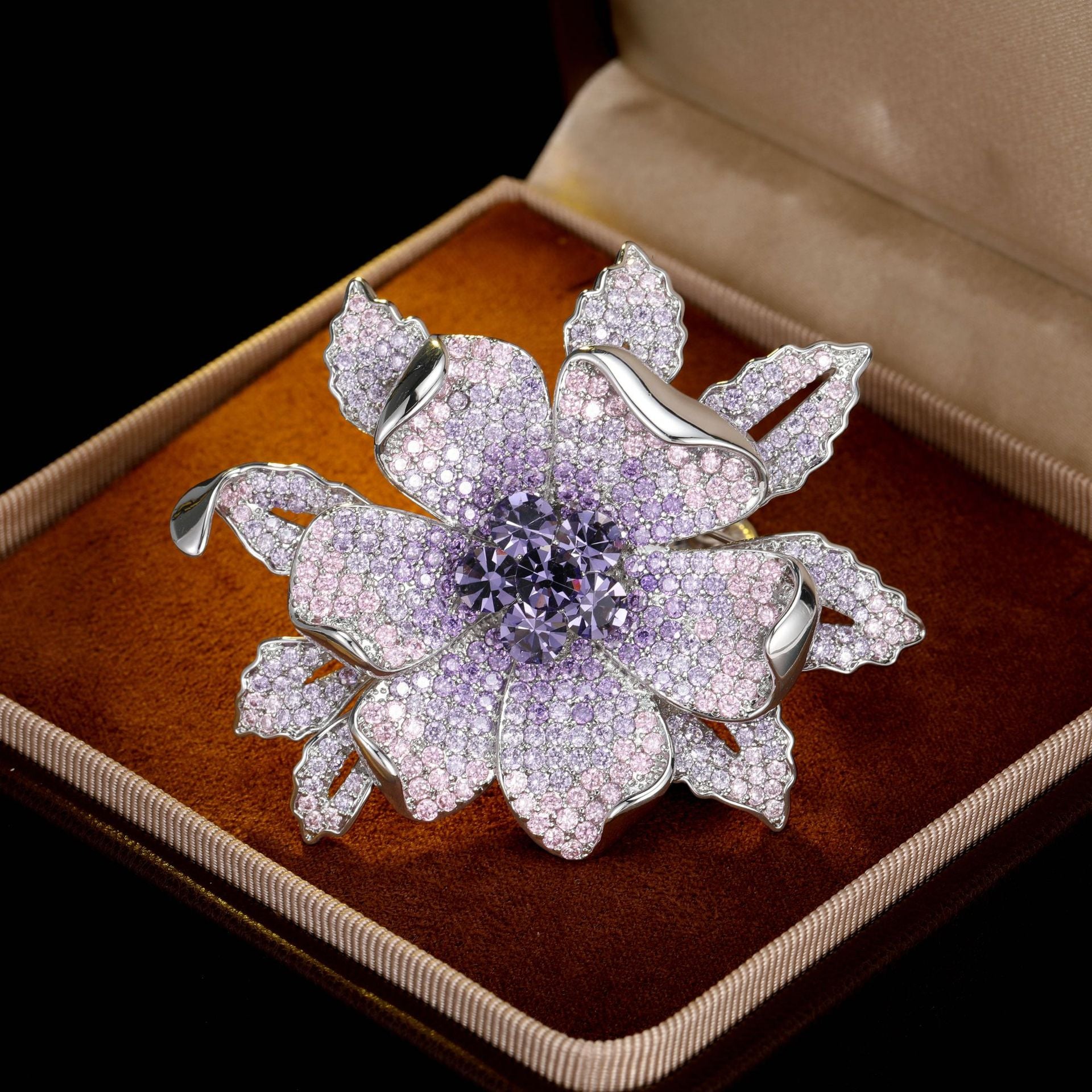 2025 High-end luxury full of zircon peony brooch women's elegant flower high-end blazer corsage accessories