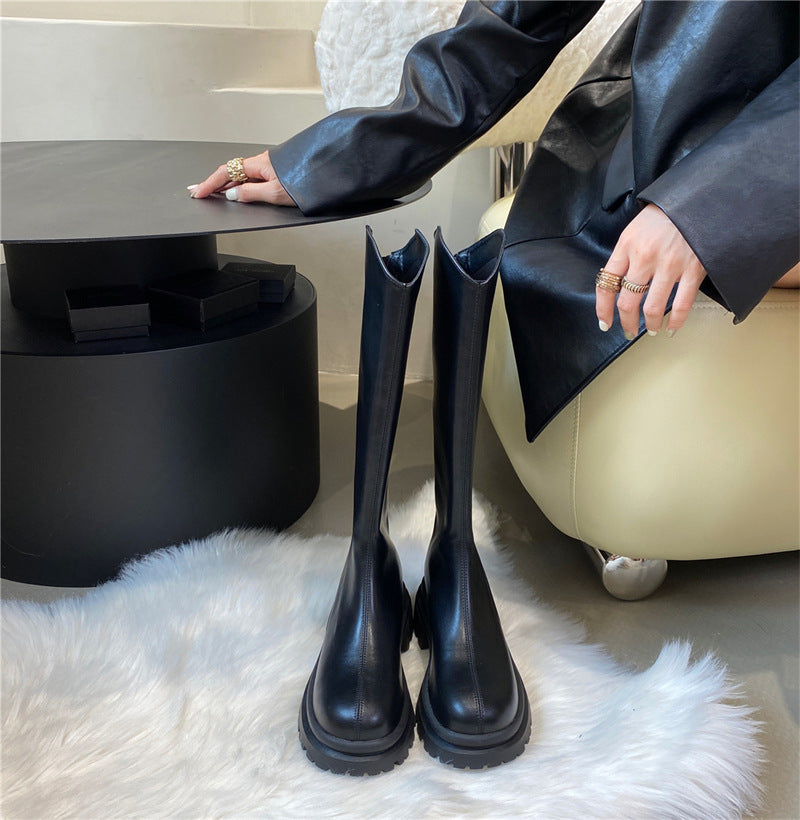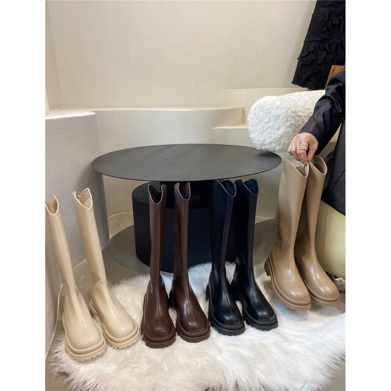 2025 Platform boots women's popular autumn and winter new brown thick heel fashion boots long thin boots knight boots women