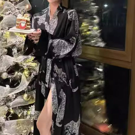 2025 Sexy leopard silk pajamas women's popular new summer ice silk light luxury high-end nightgown bathrobe morning gown
