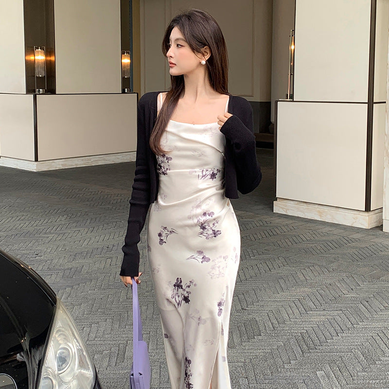 2025 Spring New Temperament High Waist Suspender Dress Sub-print Pure Desire Holiday Dress Women 88193