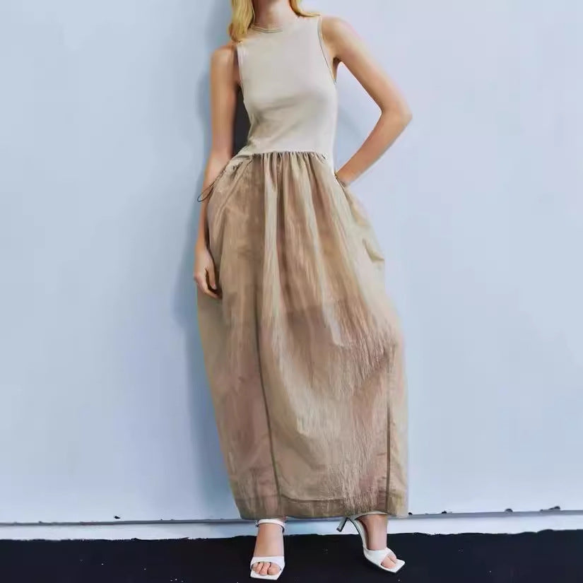 2025 Zheng Xiyi same popular summer new waist splicing new Chinese bud vest skirt sleeveless dress