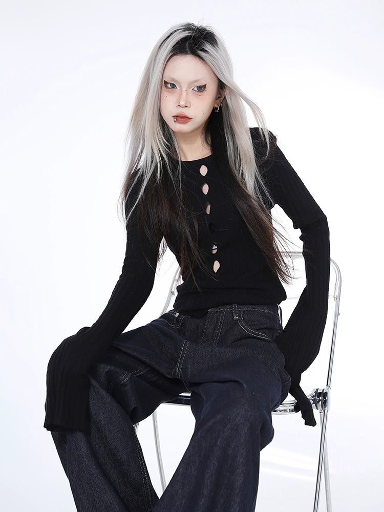 2025n Spice Girl Long Sleeve Knitted Sweater Early Autumn New Hollow Sexy Design Slim-fit Versatile Top Women's