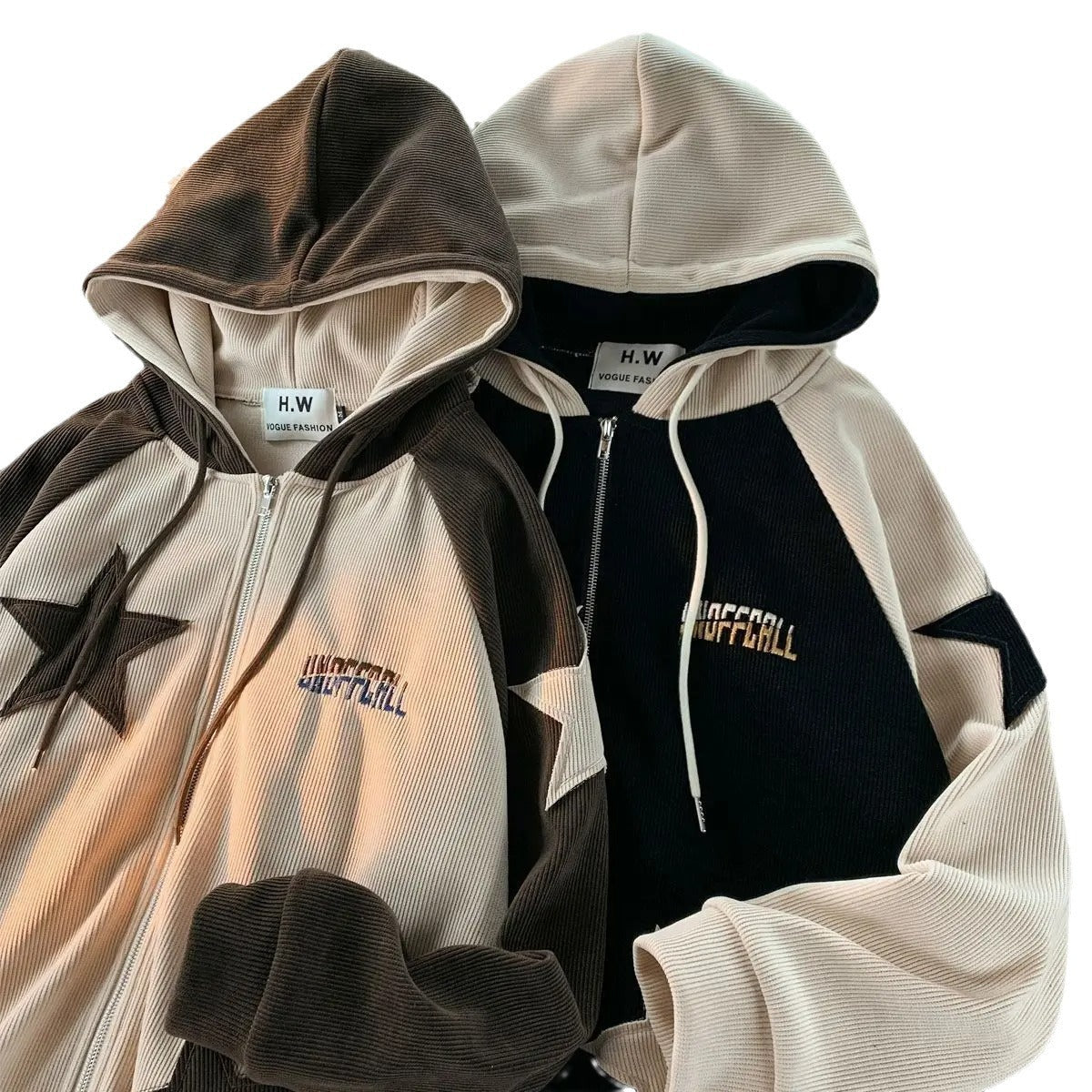 back to school fits American Retro Corduroy Star Stitching Zipper Sweater Sports Casual Y2g Coat for Men and Women