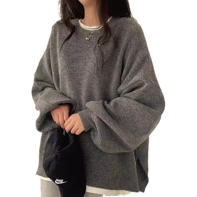 casual fall outfits Chic Autumn and Winter French Style Lazy round Neck Side Slit Loose Casual All-Match Long Sleeve Warm Knitted Sweater
