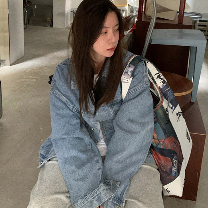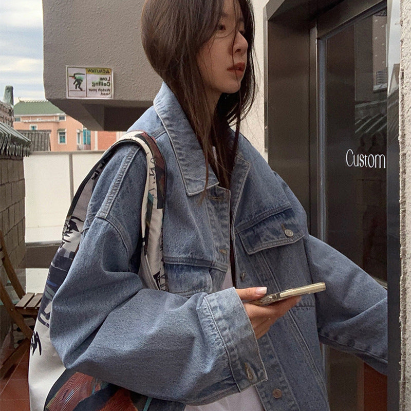 college outfits Blue Retro Denim Coat for Women Spring New Korean Style Loose All-Matching Ins Fashionable Outerwear Jacket Top