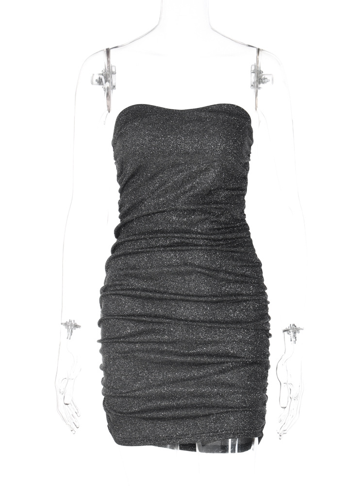 pop culture dress to impress Style Women's Spring New Fashion Sexy V-neck Tube Top Backless Pleated Dress